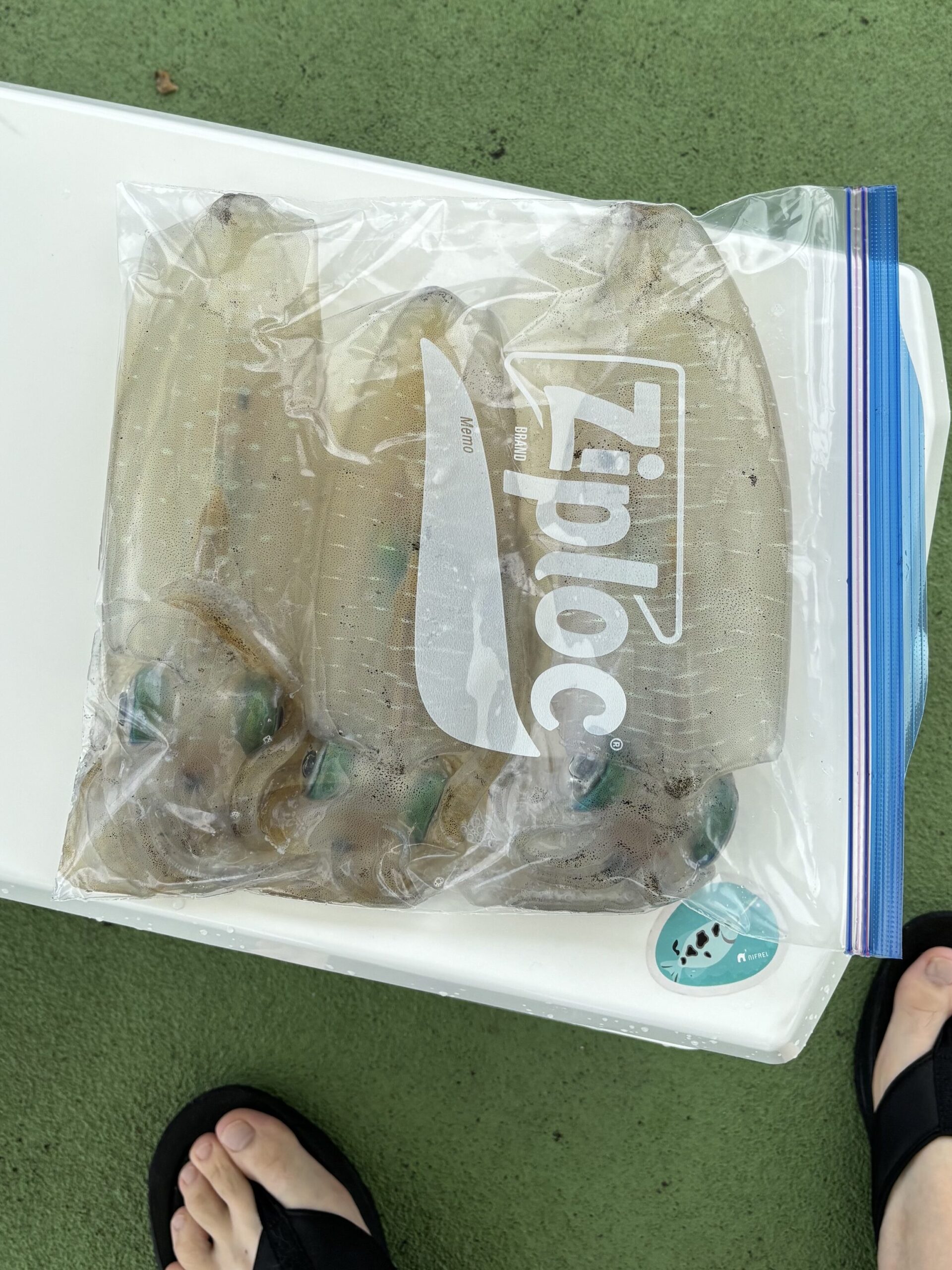 釣ったアオリはさばいて刺身と肝天にして、あとは冷凍。